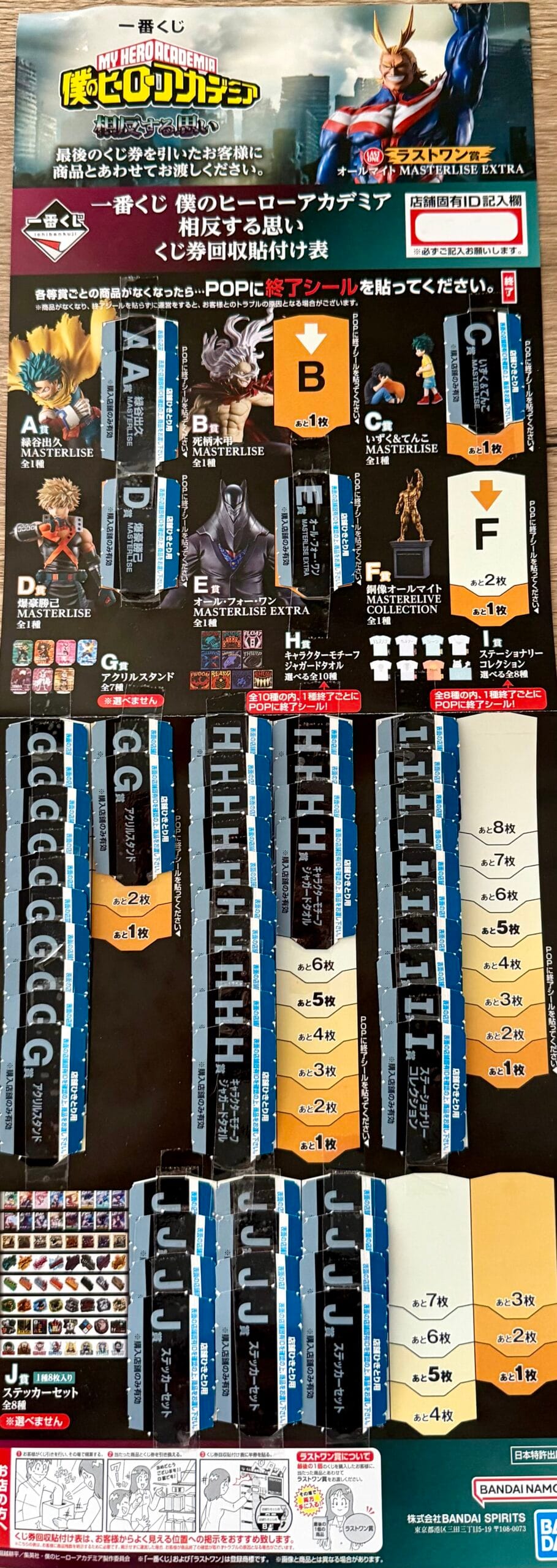 Etant donné aussi le coté unique des tickets qui une fois ouvert ne peuvent plus être remis en jeu, aucun retour ni aucun remboursement ne peut être accepté pour les loteries Ichiban Kuji. La surprise fait parti du jeu.