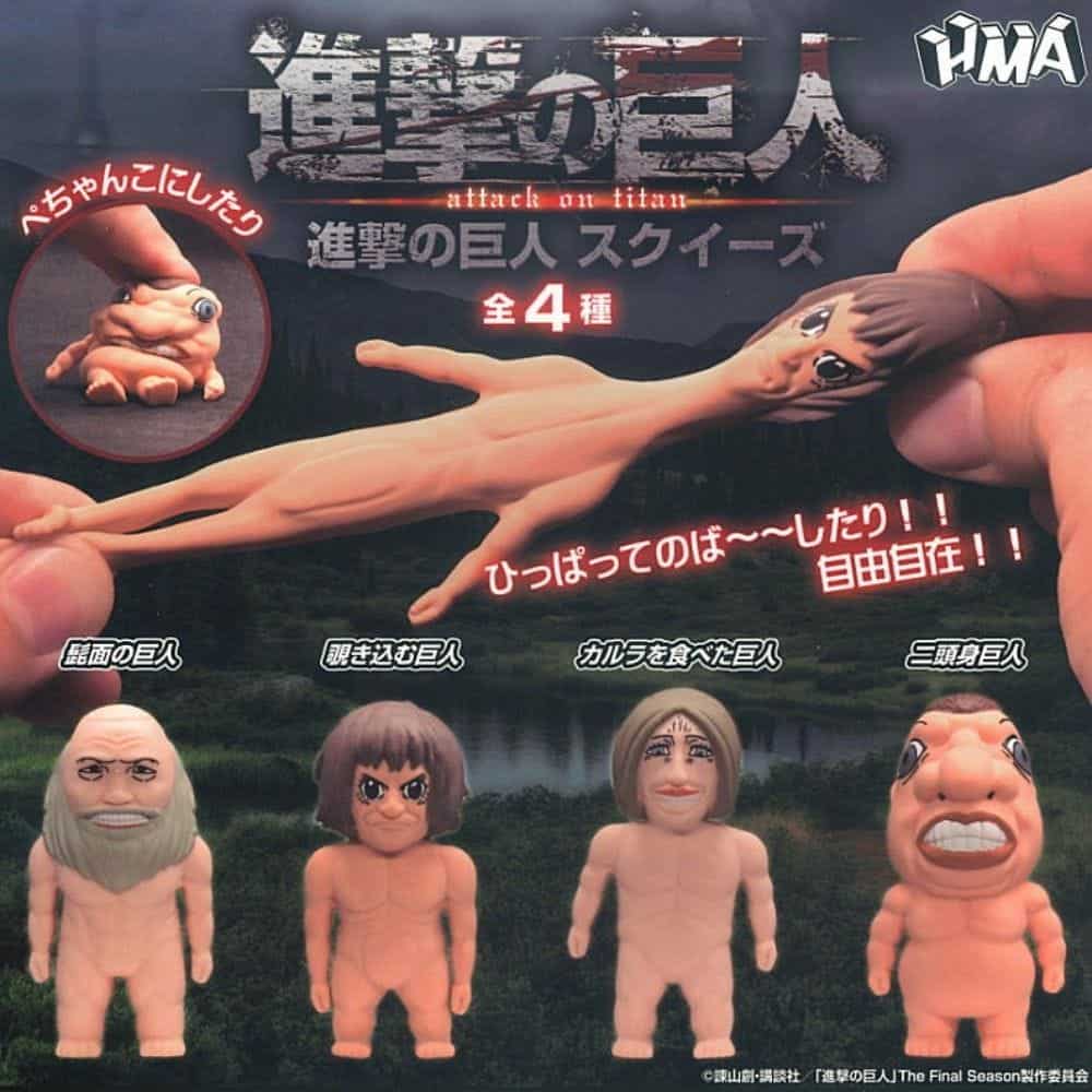 Inspirés de certains Titans emblématiques de la série, ces figurines molles sont déformables, étirables et compressibles à volonté.