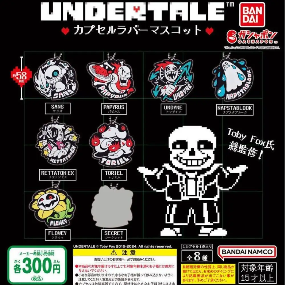 Revivez les moments mémorables du célèbre jeu Undertale grâce à cette collection exclusive de Rubber Mascots. Chaque capsule contient un porte-clés en caoutchouc représentant vos personnages favoris dans un design audacieux et fidèle à l’esthétique du jeu. Parfait pour les fans d’Undertale et les amateurs de goodies uniques, ces mascottes ajouteront une touche fun et nostalgique à vos accessoires.